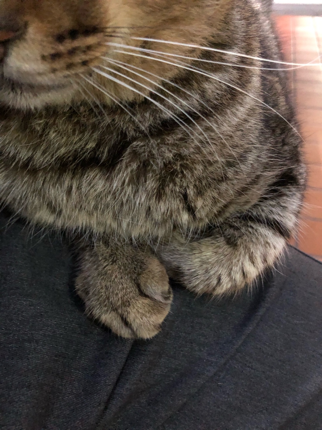 八枚目は居間の明かりが壁に遮られてちょっと暗い場所なんですが、買い物の時にエコバッグじゃなくてリュックサックを使ってまして、それを片付けずにそのまま椅子の上に放置してたら…目がおかしくなりそうな感じにめっちゃ同化しとりますやん(꒪⌓︎꒪)
